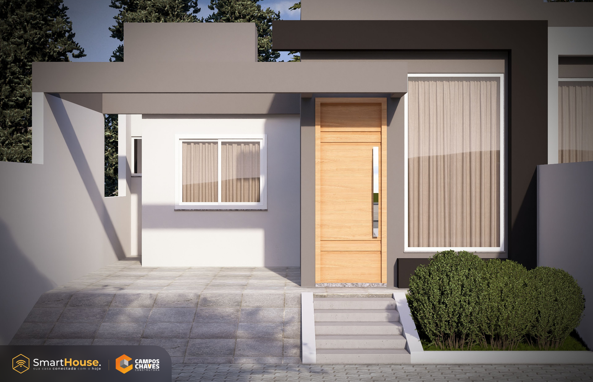 A Smart House vem com equipada luzes e interruptores com wifi, assistência virtual, alarme, aspirador robô e esperas para instalação de energia fotovoltaica.